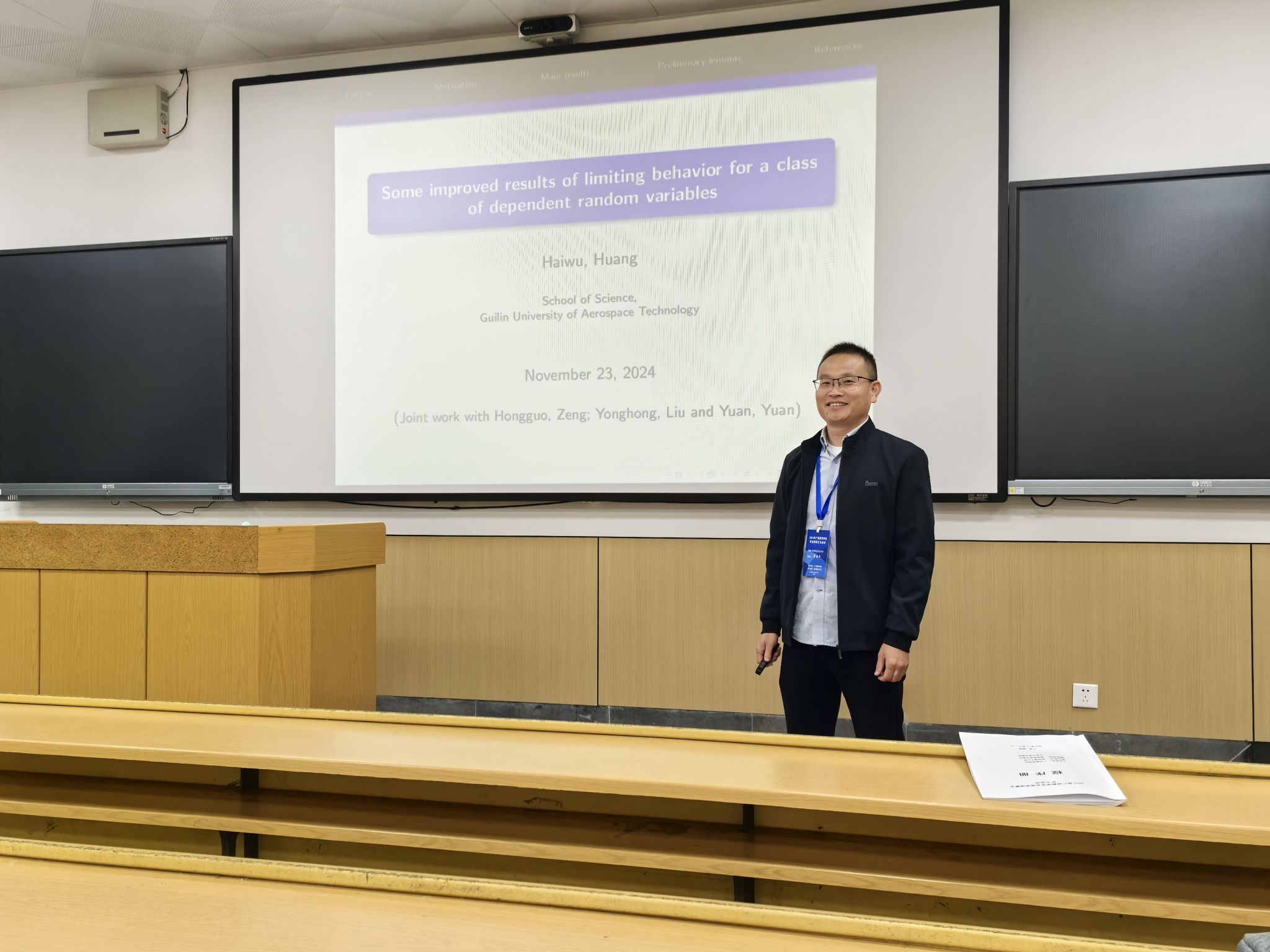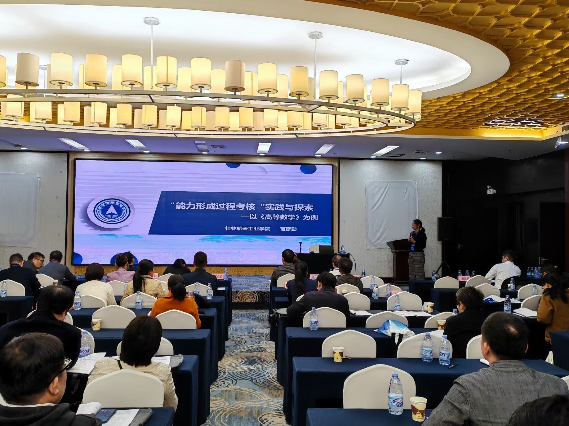 本次会议汇聚了广西壮族自治区内150余位数学领域的专家学者,大会由广西数学学会主办、桂林理工大学承办。会议邀请了中山大学姚正安教授、厦门大学谭忠教授、上海大学张红莲教授等多名区内外专家做了多场专题报告,必赢76net线路唯一官方网站范彦勤老师做了“能力形成过程考核实践与探索—以《高等数学》为例”的大会报告。重点分享了必赢76net线路唯一官方网站高等数学课程的能力形成性评价的做法及成效,介绍了如何落实“学生中心、产出导向、 持续改进”理念和要求,保障学生的学习效率与学习质量,促使学生能力形成的经验做法,获得与会代表们的一致好评。必赢76net线路唯一官方网站黄海午教授做了“Some improved results of limiting behavior for a class of dependent random variables”学术专题报告,分享其在概率论与数理统计理论及应用方面的最新研究成果。