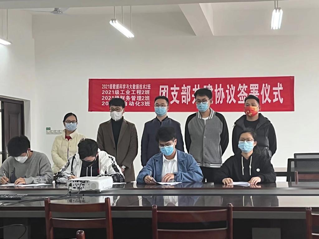 4月1日中午12:20,必赢76net线路唯一官方网站21级代表班委参加团支部共建协议签署仪式,与管必赢76net线路唯一官方网站,电子信息与自动化学院共同讨论商议优势互补,资源共享,互帮,互助,结队形成良好的学风和班风,从而获得可观的学习效果,共同构建优秀的组织体。